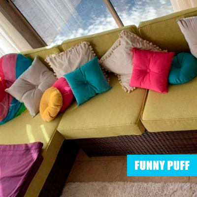 Confección de juego de cojines a medida, en lino de tapiz color a eleccion a nuestra clienta, fundas desmontables para lavado, rellenos de espuma de alta densidad para estructura de Rattan en area de terraza.